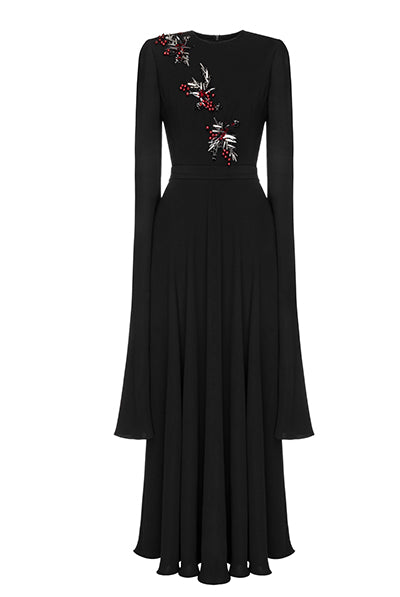 The collection is brought to life through a palette of luxurious and tactile fabrics. Rich wool-cashmere blends and supple leathers provide structure and warmth, while the delicate movement of silk adds a poetic touch. The color story is rooted in classic neutrals like charcoal, navy, and winter white, dramatically punctuated by jewel-toned accents of emerald and ruby. Intricate hand-embroidered details and sculptural hardware serve as hallmarks of the Maison Keti brand, offering a collection for the confident, contemporary woman who values both timeless style and artistic expression.