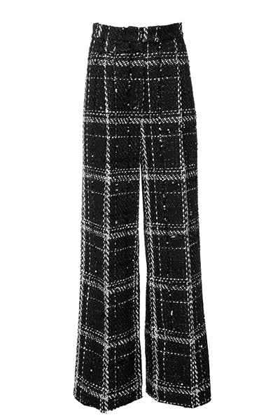 Slip into something more stylish with these Carnation Trousers, crafted from luxurious tweed for a distinguished look. Boasting a sophisticated blend of black and square shapes, these trousers make for an ideal choice for any special occasion. Exuding an air of elegance and exclusivity, the Carnation Trousers are an indisputable must-have.