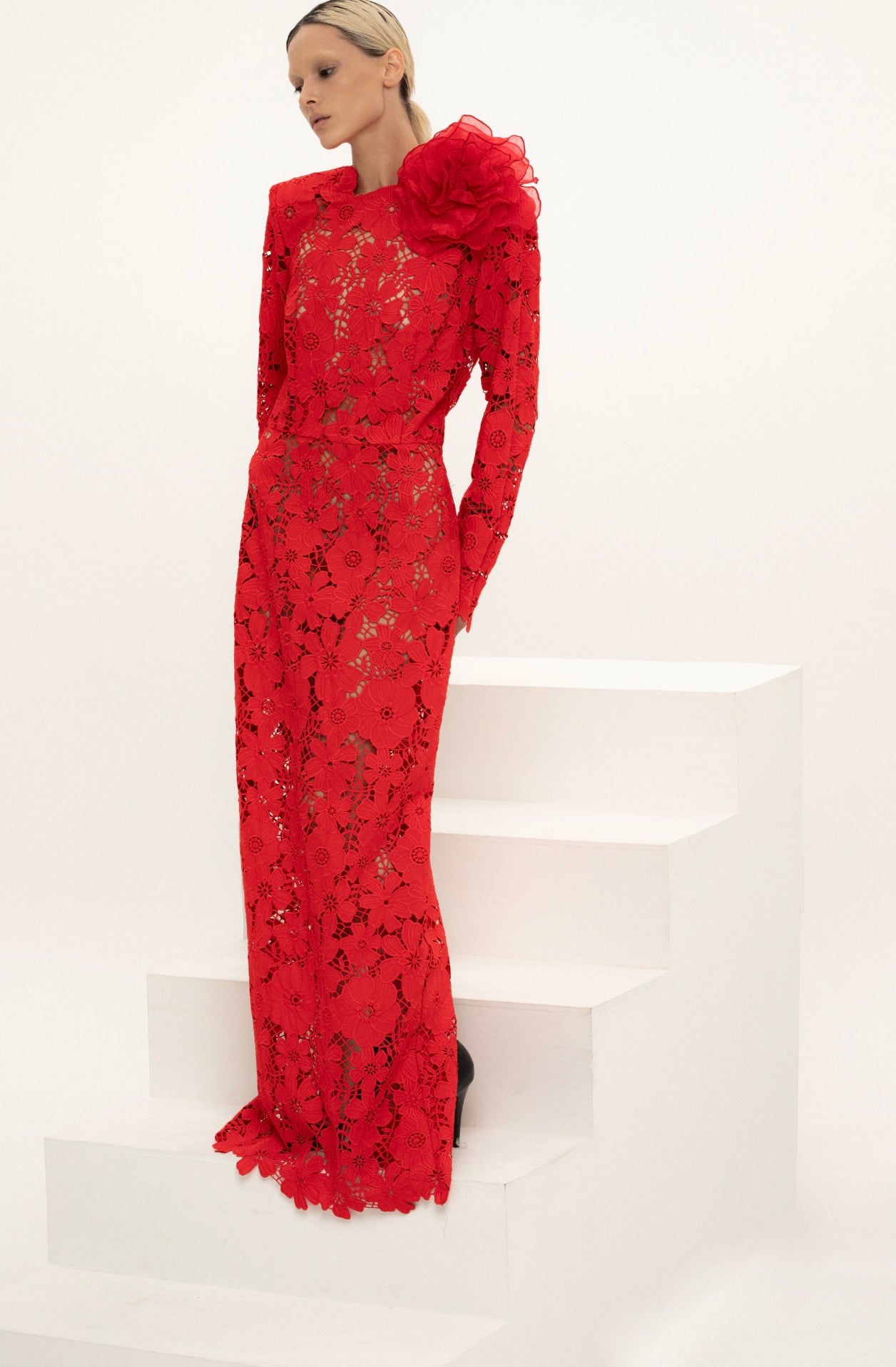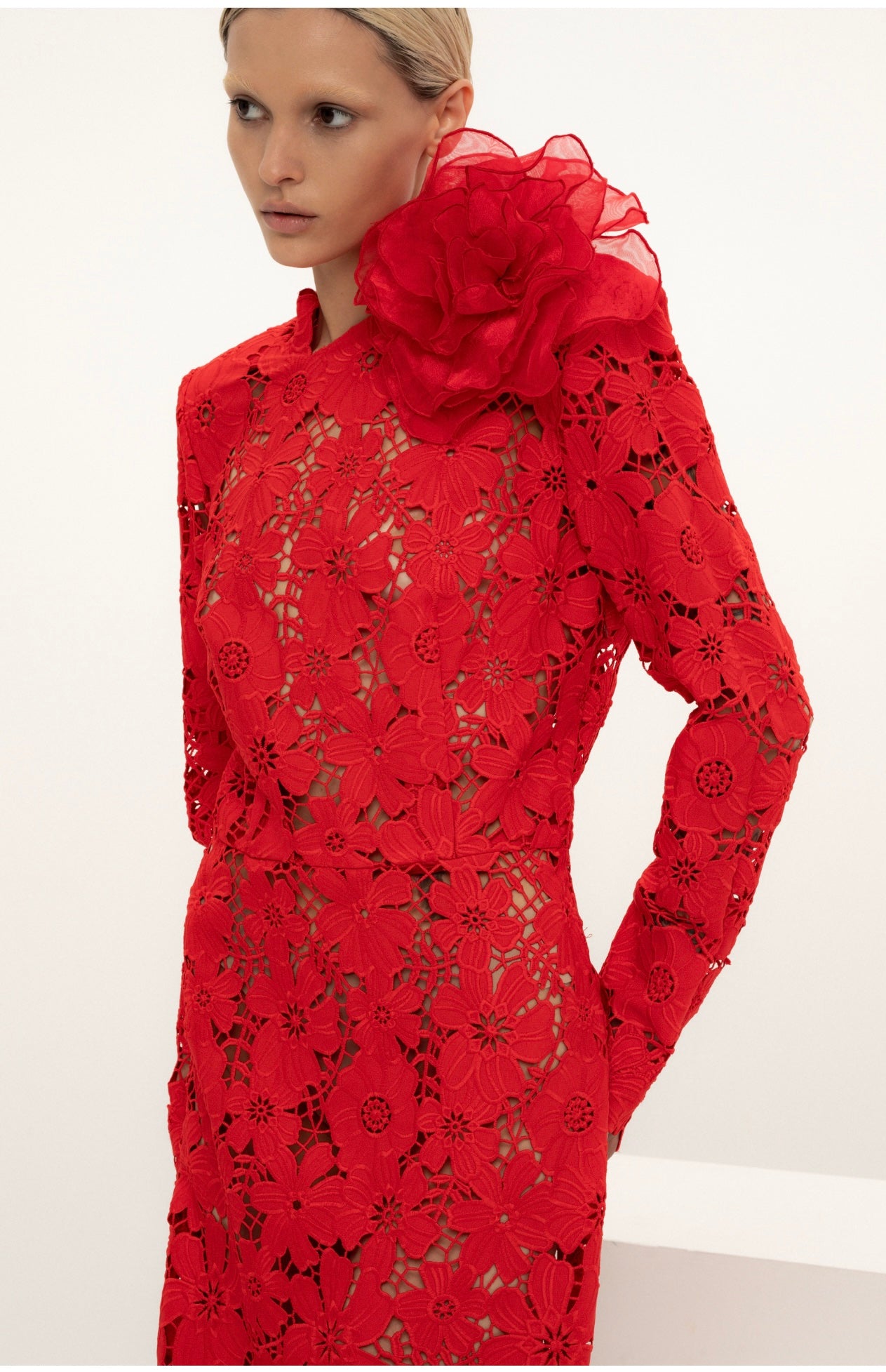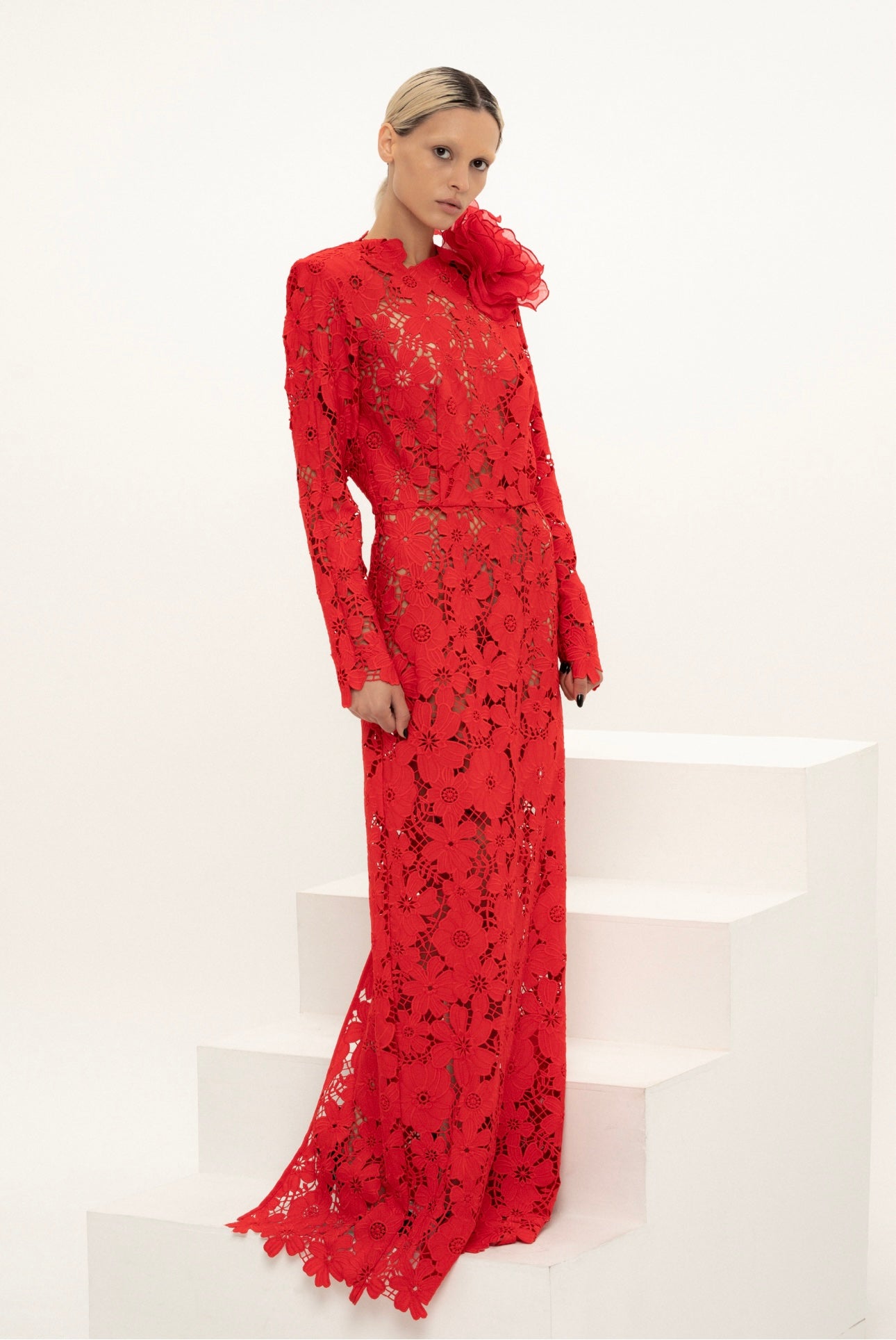 This RED VIOLET dress is simply exquisite. Crafted from sumptuous red gipsy. Belt makes silhouette more classy and elegant. Exude sophistication and luxury in this timeless piece that is sure to be admired.