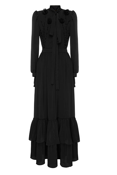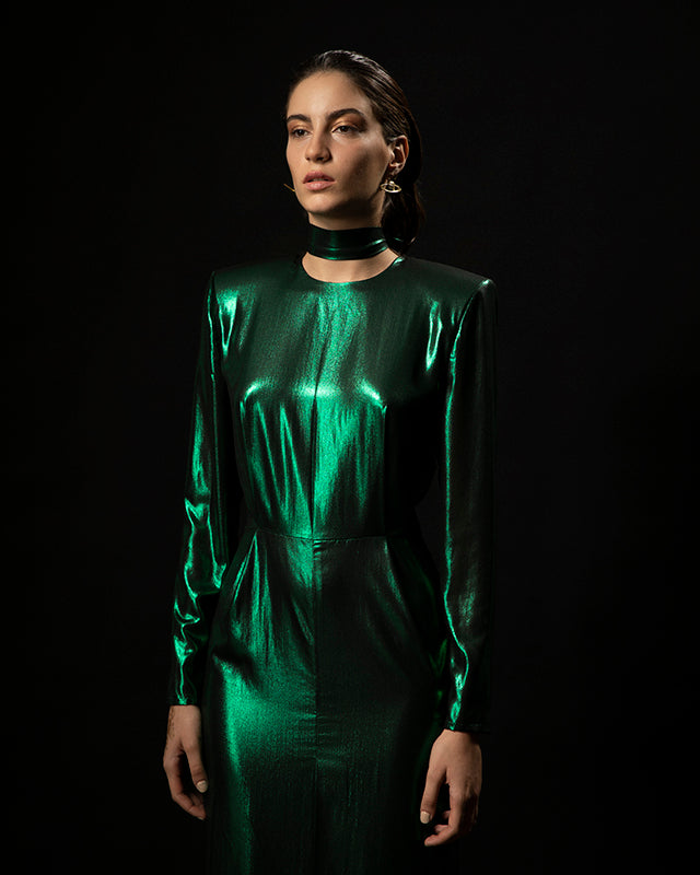 The collection is brought to life through a palette of luxurious and tactile fabrics. Rich wool-cashmere blends and supple leathers provide structure and warmth, while the delicate movement of silk adds a poetic touch. The color story is rooted in classic neutrals like charcoal, navy, and winter white, dramatically punctuated by jewel-toned accents of emerald and ruby. Intricate hand-embroidered details and sculptural hardware serve as hallmarks of the Maison Keti brand, offering a collection for the confident, contemporary woman who values both timeless style and artistic expression.