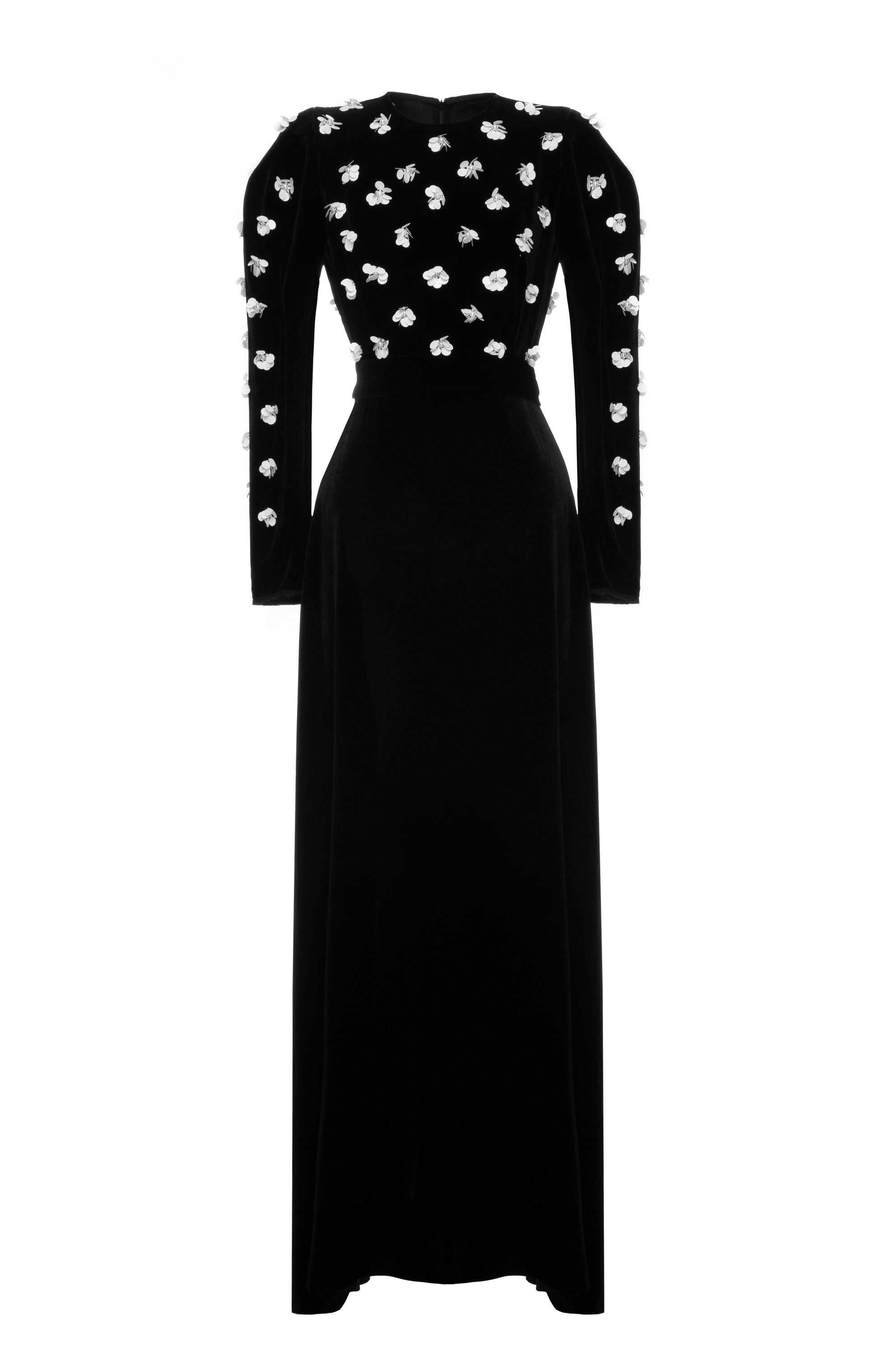 Capture the essence of luxury with this stunning black dress. Featuring a marmeid shape and long sleeves, this maxi dress is the perfect addition to any elegant wardrobe. The dress is sure to make a lasting impression.