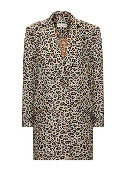 Smart and elevated blazer is made from leopard-cotton that perfectly matches with the coordinating pants. It’s designed in a slightly loose, double-breasted silhouette and has padded shoulders for structure. Wear it with the same material pants.