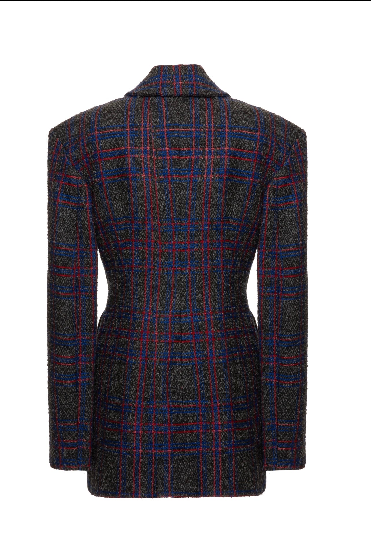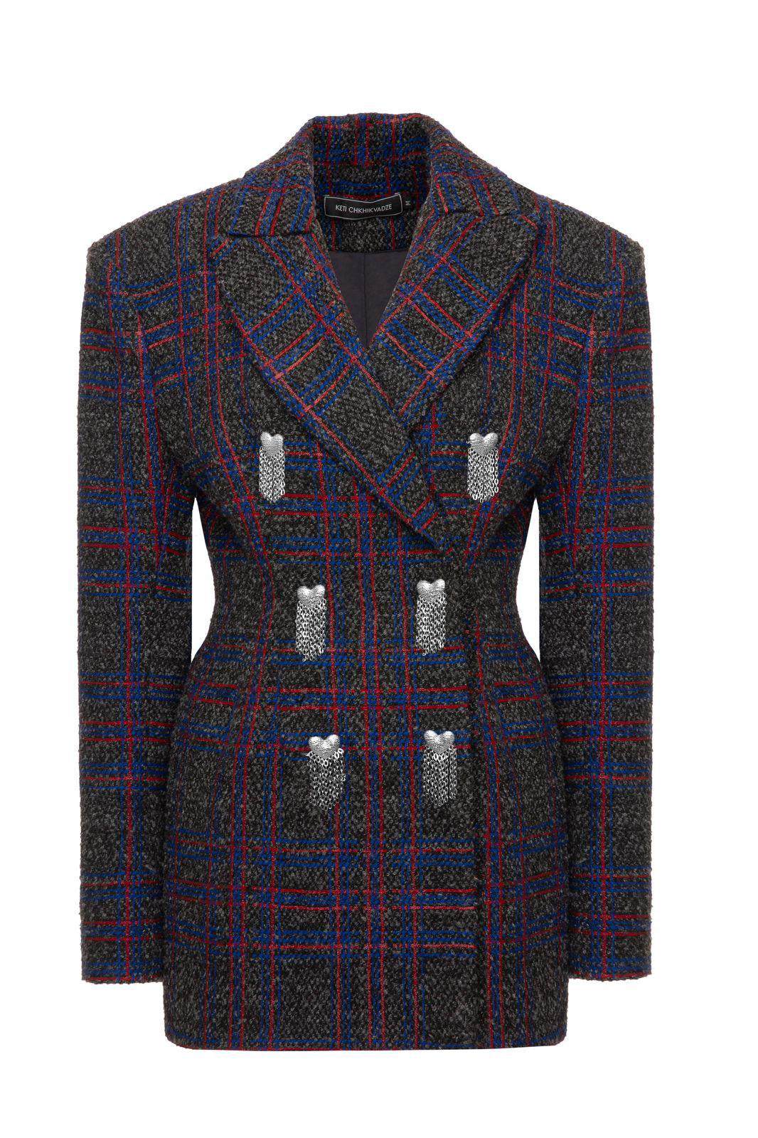 This jacket is made from soft wool woven with blue and pink colors.tailored with heart shape buttons and a nipped-in waist. The silk-satin lining means it’ll slip on smoothly over blouses. Very elegant.