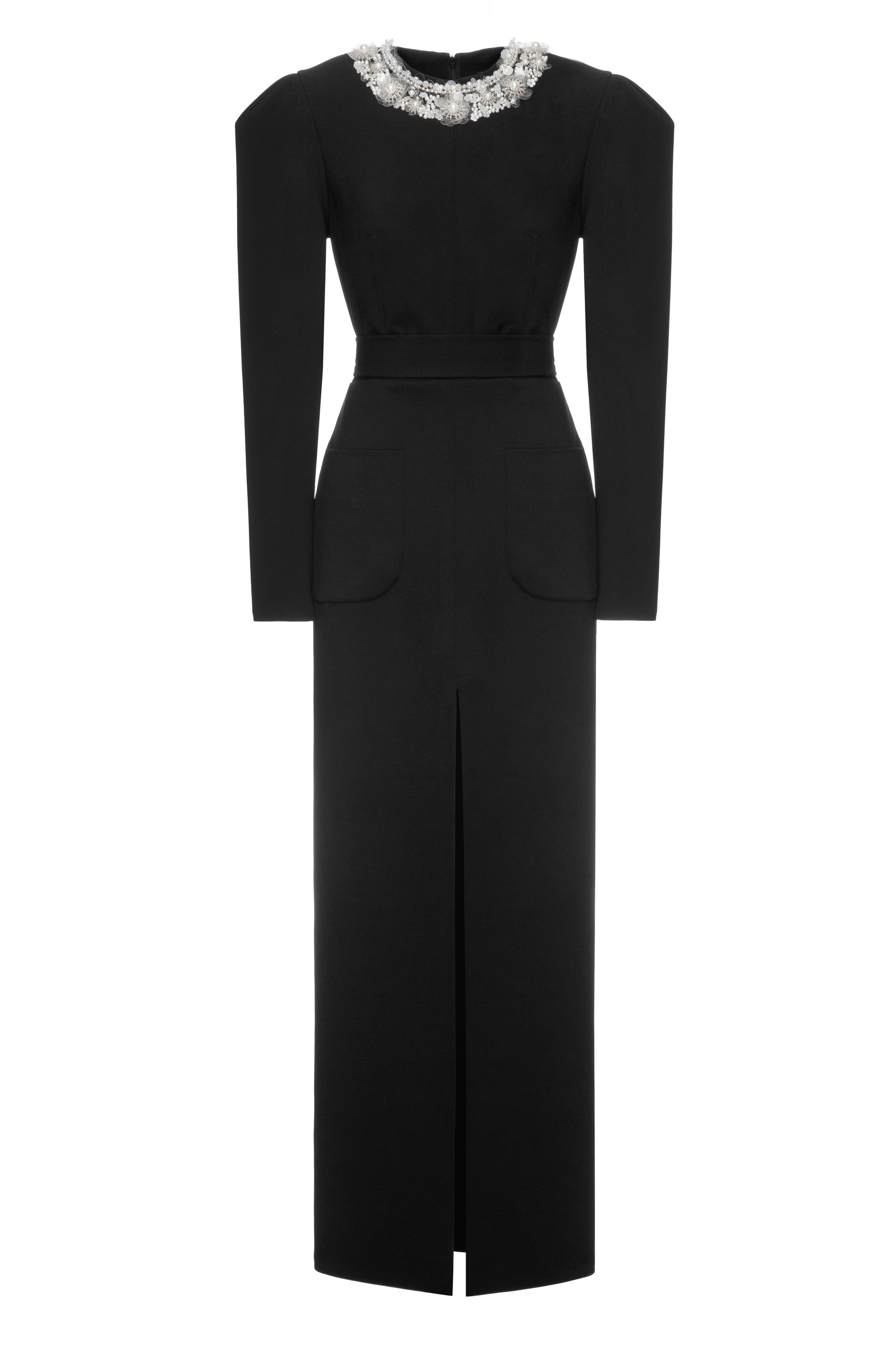 Exude sophistication and grace in our black evening dress with a slit in front, designed with beatiful necklace, add an extra touch of glamour. Perfect for a special occasion, this luxurious maxi dress will make you stand out from the crowd with effortless ease.