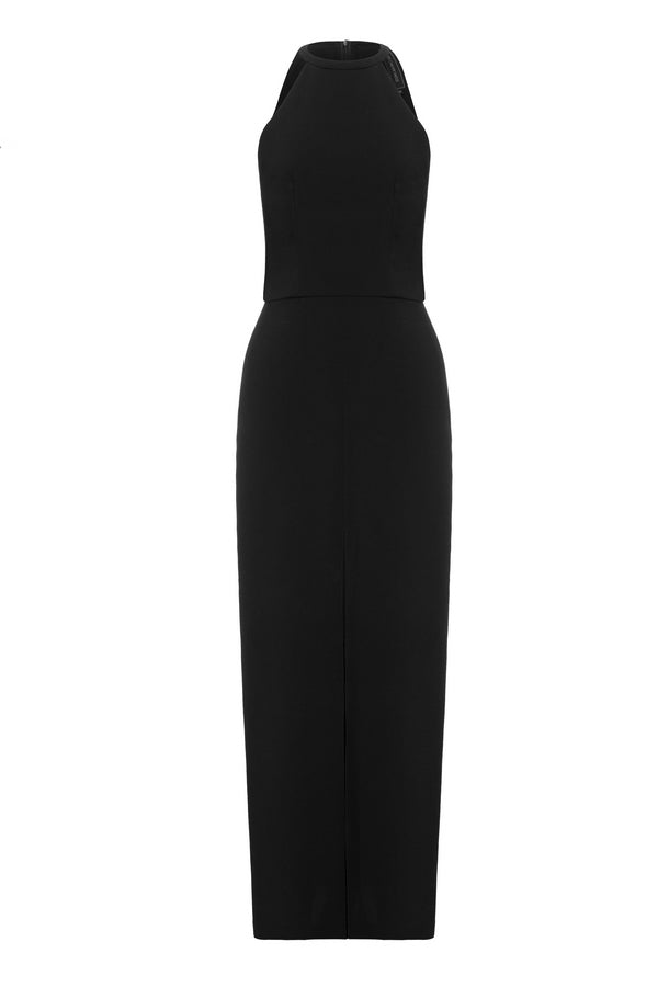 Stay classic with this Black Crepe Dress. Crafted from a lightweight and luxe crepe fabric, it features an alluring halterneck for a timelessly elegant touch. Perfect for formal occasions, this dress showcases sophistication, style, and versatility for all of your special events.