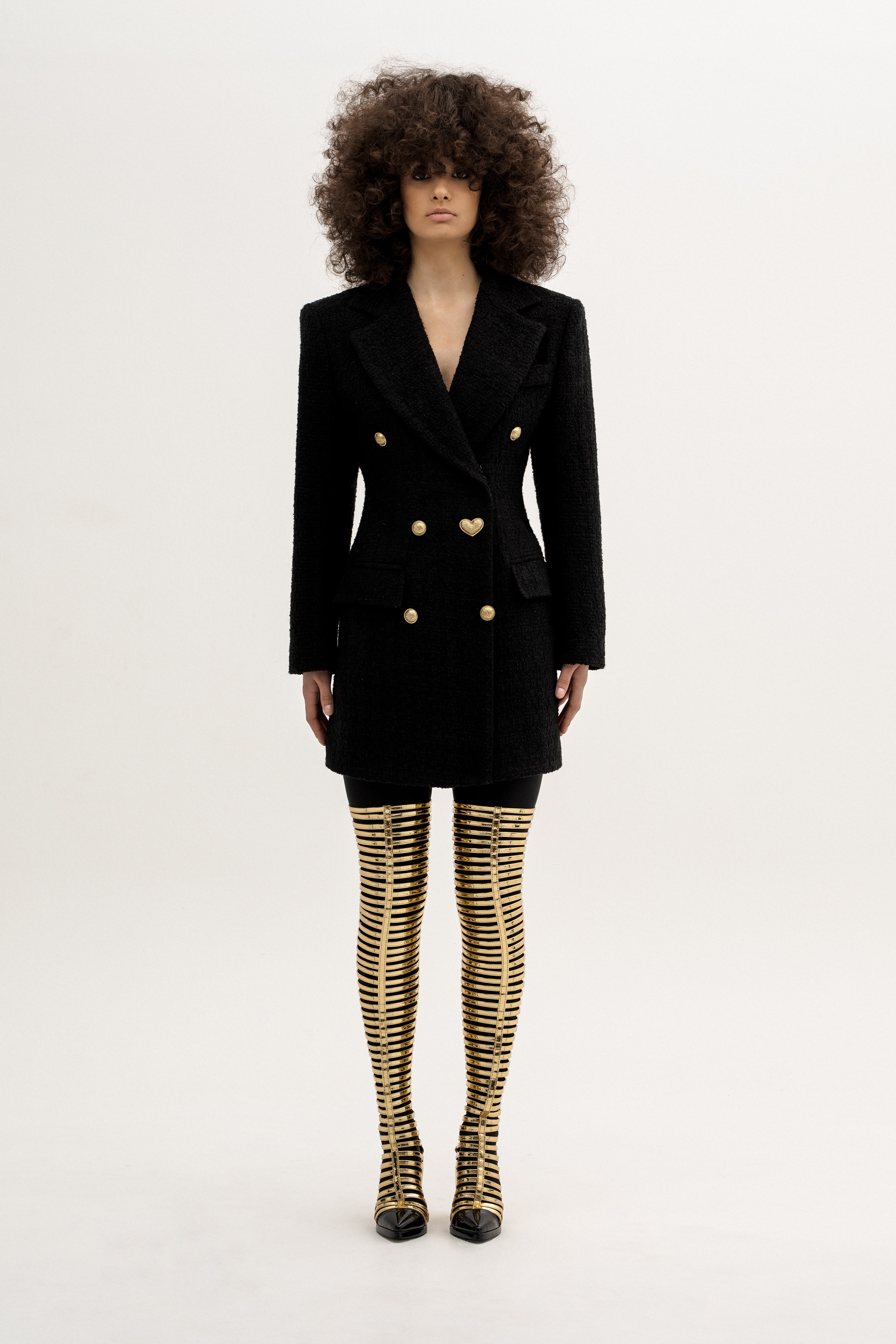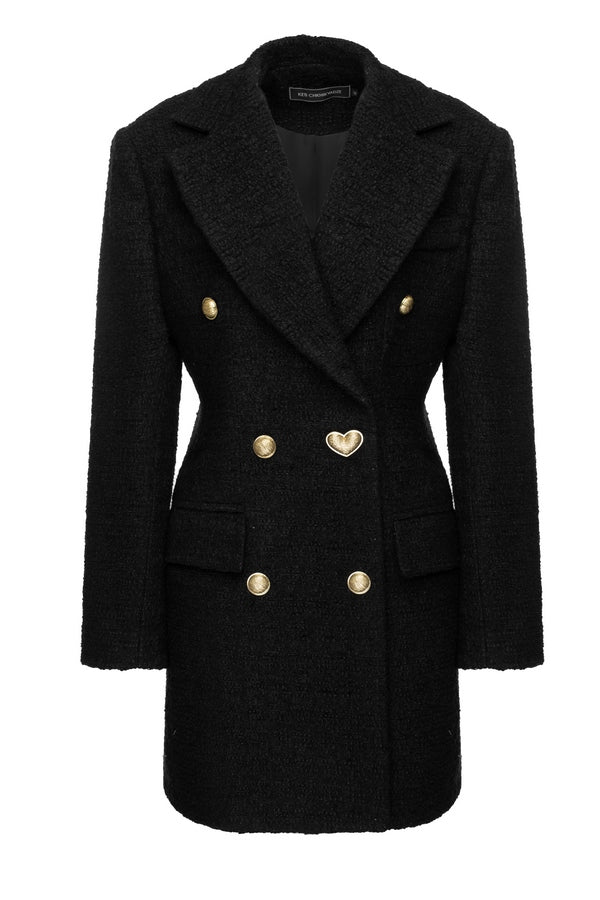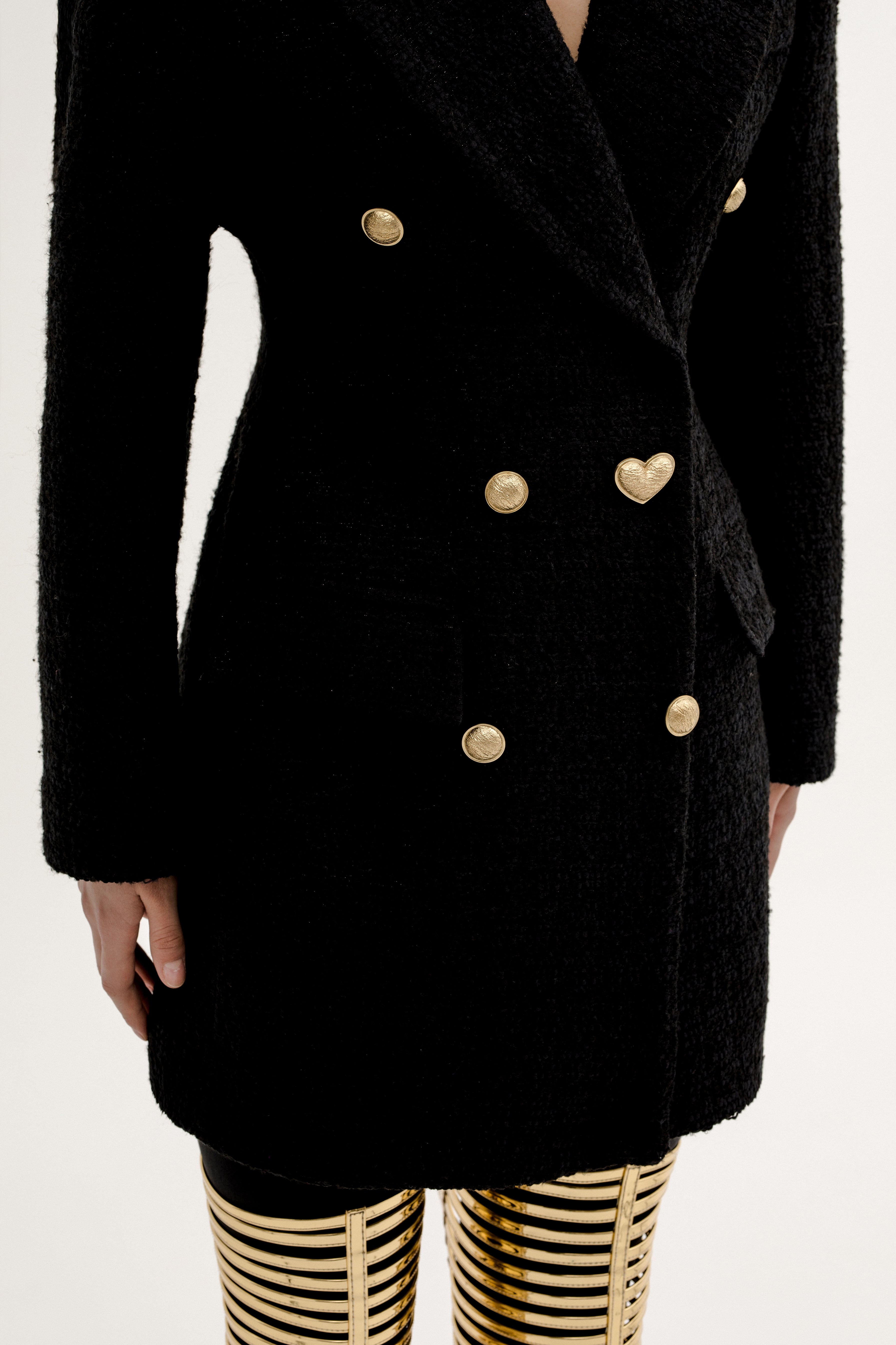 Black jacquard jacket with golden buttons