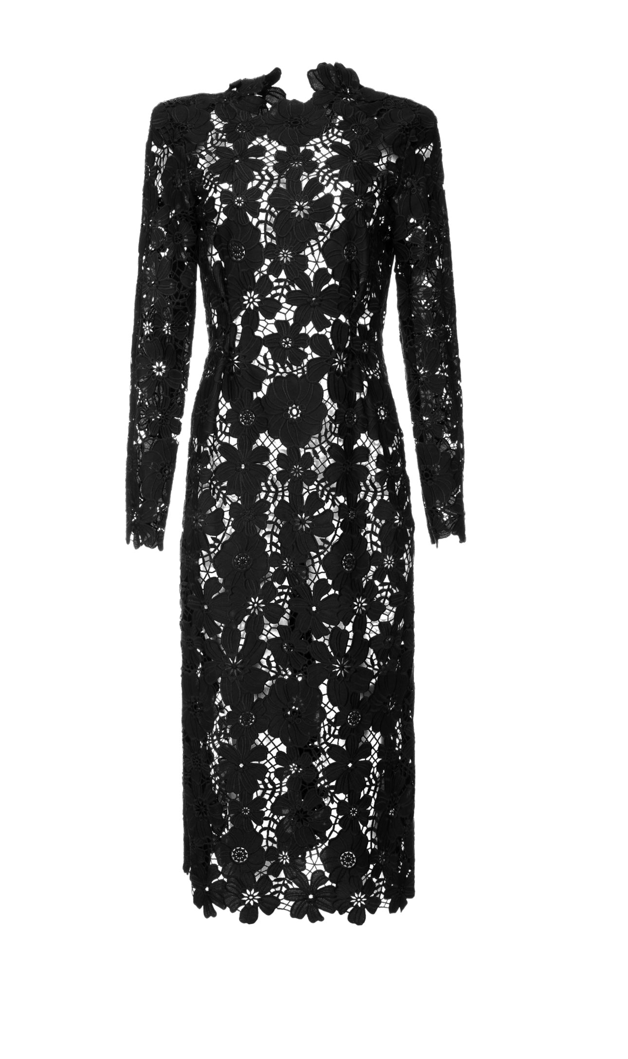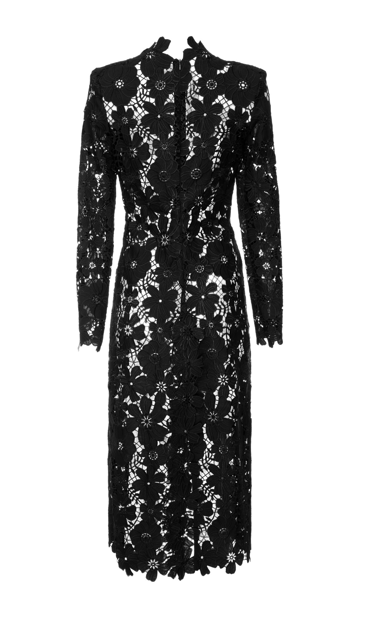 This midi dress is crafted with luxurious black gipsy fabric. The fabric is semisheer for a subtly sophisticated look. It’s a perfect combination of sexy and classy, allowing you to make a lasting impression.