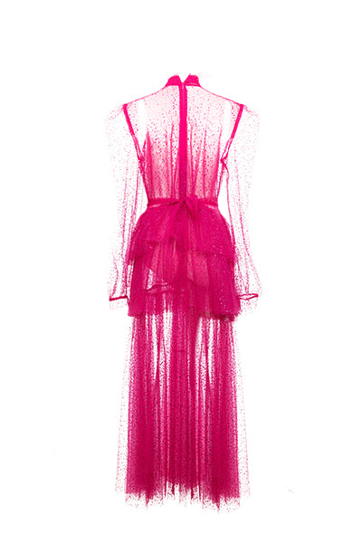 Add a touch of royalty to your wardrobe with Daisy, our pink tulle princess dress, graciously adorned with little crystals. This exclusive and elegant design is perfect for formal events, sure to make you the belle of the ball.