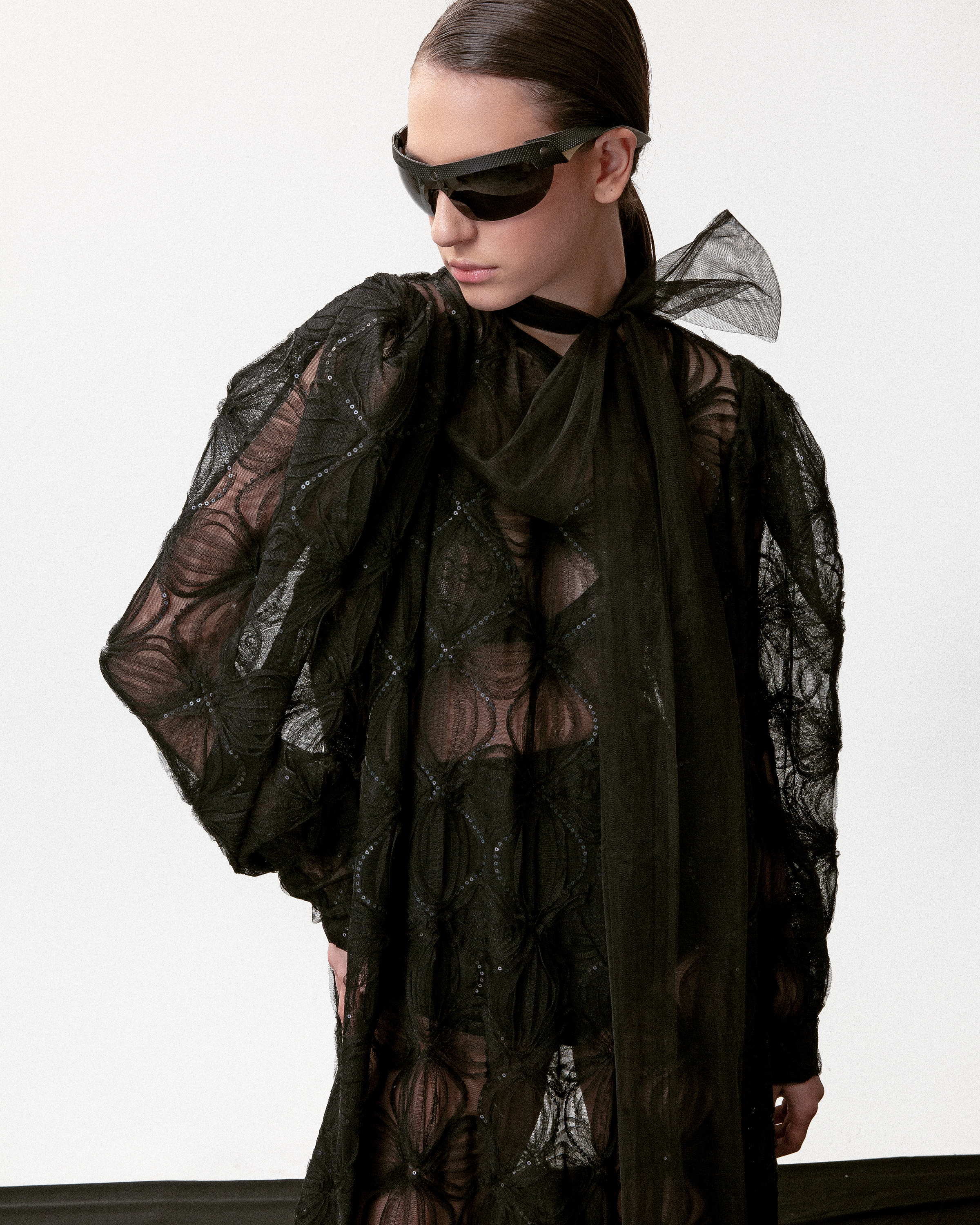 The Black allure is a stunning black tulle dress, combining an effortless silhouette with sheer elegance. Its comfort and see-through design enhances its modern allure, offering the perfect balance of luxury and practicality. Infuse your look with a touch of sophistication and discover the beauty of the Peony.